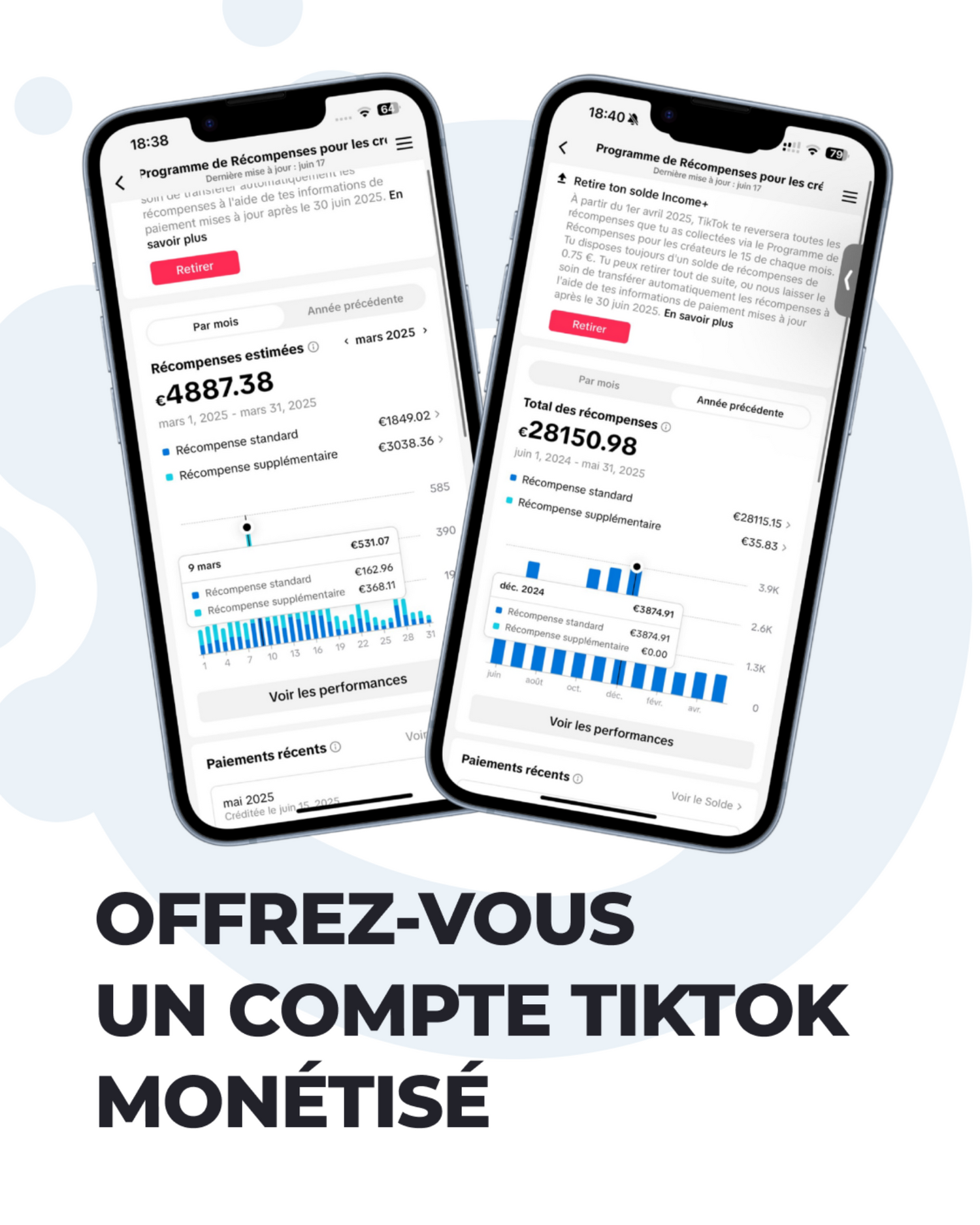 Un compte déjà monétisé vous permet de commencer à gagner de l’argent dès le premier jour, sans devoir attendre de franchir les seuils de TikTok.